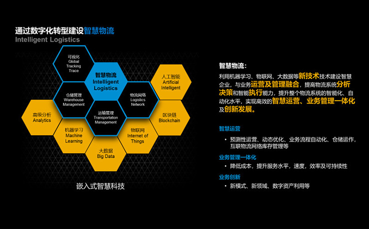 建設(shè)智慧物流。利用創(chuàng)新技術(shù)建設(shè)智慧企業(yè),提高物流系統(tǒng)分析決策和智能執(zhí)行能力,提升行業(yè)智能化、自動(dòng)化、柔性水平,實(shí)現(xiàn)業(yè)務(wù)管理一體化及創(chuàng)新發(fā)展。
