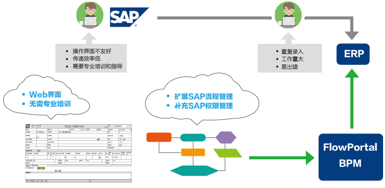 中科華智結合自身多年實施SAP ERP的經驗,在為客戶做好ERP實施服務的同時,為客戶提供業務流程的咨詢、業務流程的梳理和業務流程的搭建,通過和FlowPortal合作,為客戶提供一站式整體信息化解決方案。